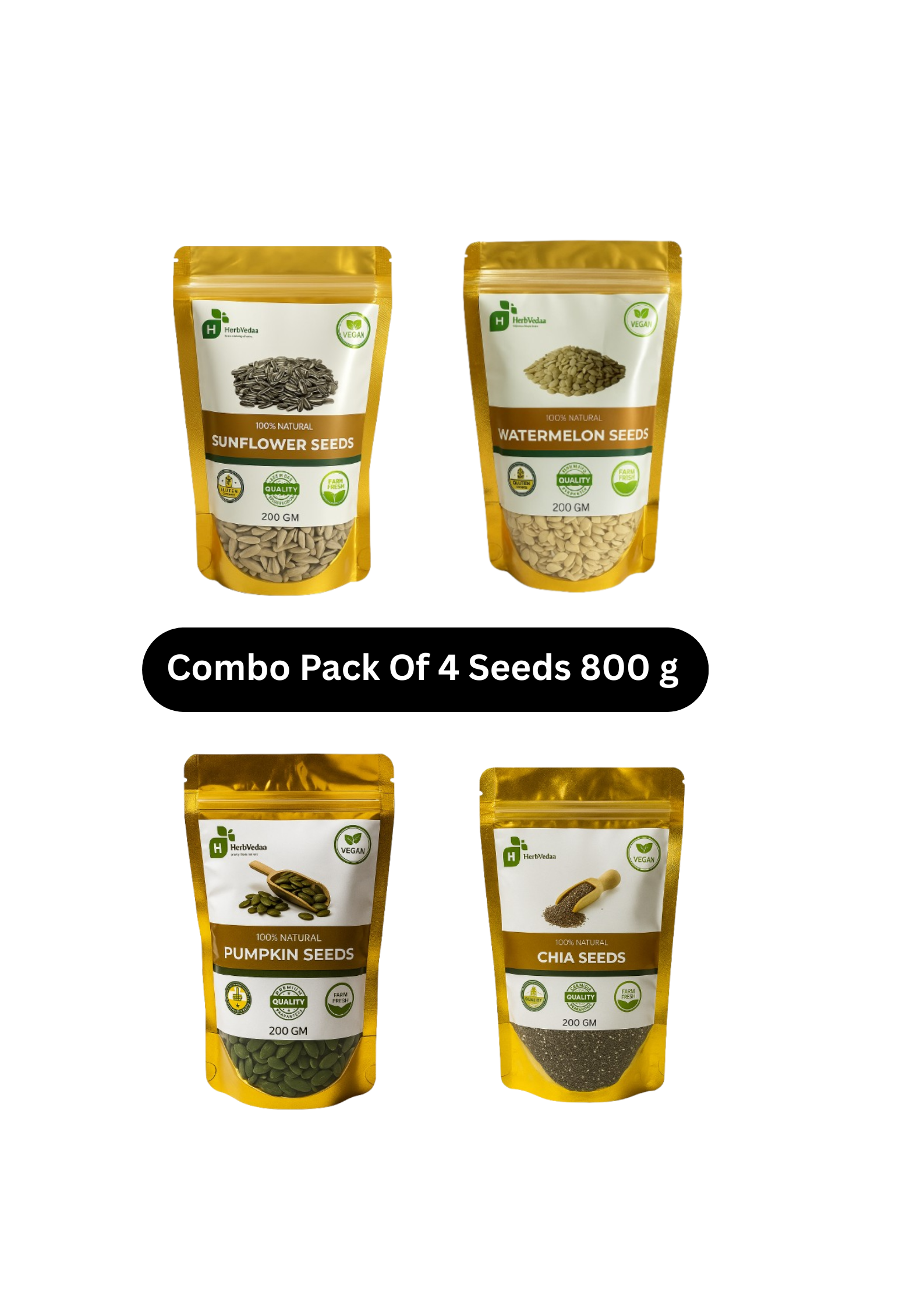 Premium Superfood Combo Pack of 4 – Chia Seeds, Sunflower Seeds, Watermelon Seeds & Pumpkin Seeds | High Protein, Fiber & Omega-3 | Weight Loss Friendly | 100% Natural, Raw & Unsalted Healthy Seeds